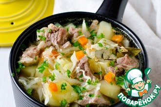 Отправить в кастрюлю крупно нарезанный чеснок и мелко нарезанную петрушку. Посолить по вкусу. Варить 10 минут. Готово.