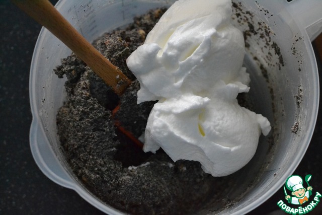 Перемешать. Взбить в отдельной миске белки и добавить к маковой смеси.