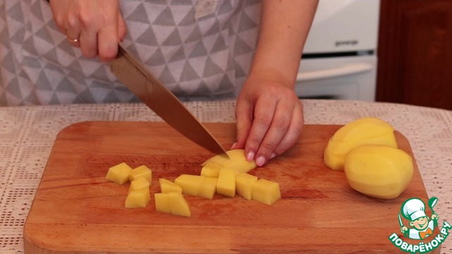 Лук нарезаем средними кубиками. Чеснок мелко порубить.
