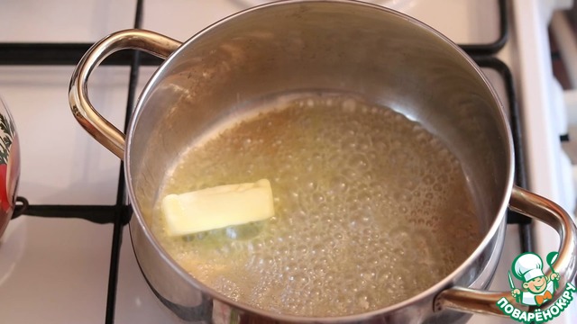 В разогретую кастрюлю наливаем растительное масло, после опускаем 50 грамм сливочного масла. Это мы делаем для того, что бы сливочное масло сильно не горело.