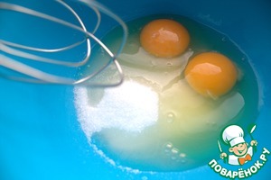 Яйца взбить с сахаром и ванилью. Сахар можно заменить на коричневый.