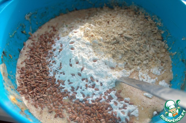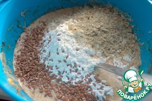 Во взбитую смесь влить растительное масло от ТМ"Олейна".