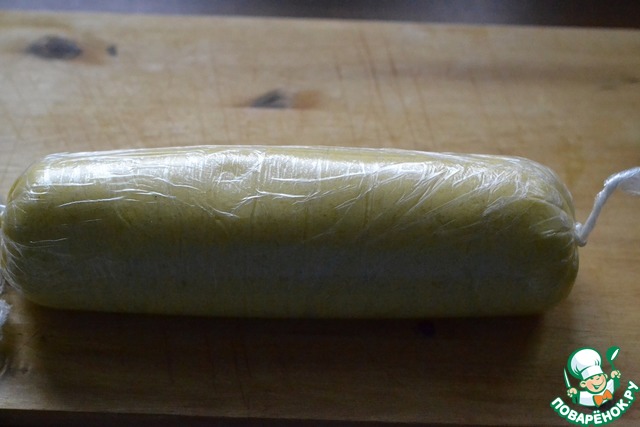 Выложить на пленку тесто и раскатать его в прямоугольник толщиной 4мм.