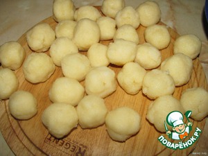 Из теста лепим шарики. У меня довольно крупные, можно помельче. Можно и просто чайной ложкой (каждый раз окуная её в холодную воду) опускать тесто в супчик, но мне так больше нравится.