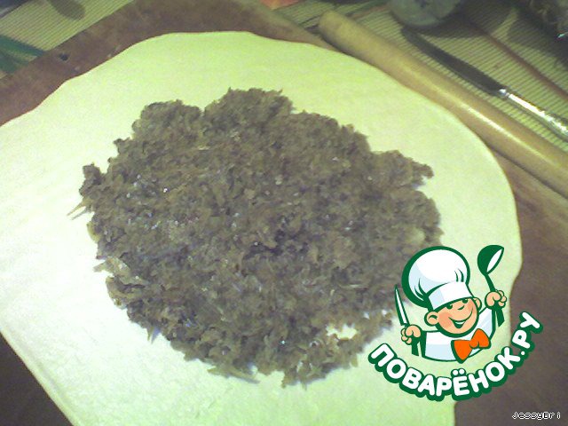 - Готовая начинка (тут уже дело вкуса - у меня была притушенная капуста с грибами)