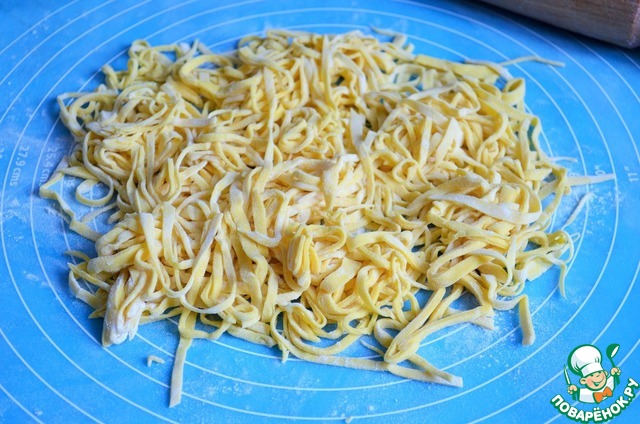 На суп хватило 2/3 теста. Оставшееся нарезать, тщательно высушить и убрать для короткого хранения, 4-7 дней.