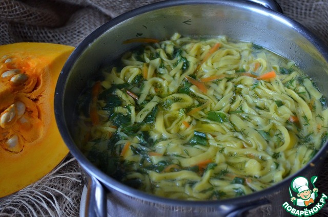 Рецепт «Куриный суп с тыквенной лапшой»: