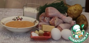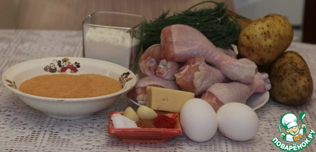 Ингредиенты для «Фаршированные куриные голени в панировке»: