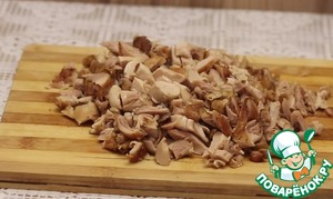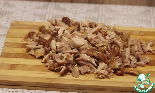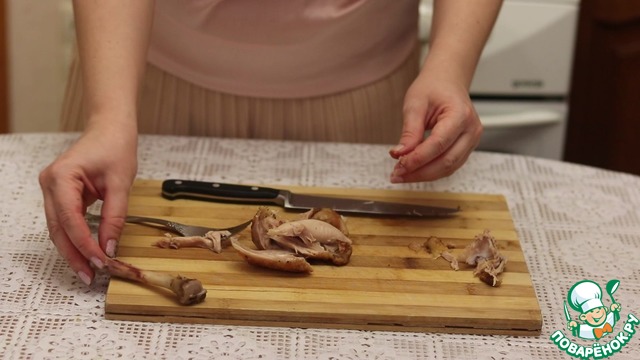Когда голени остынут снимаем мясо с косточки и зачищаем ее.