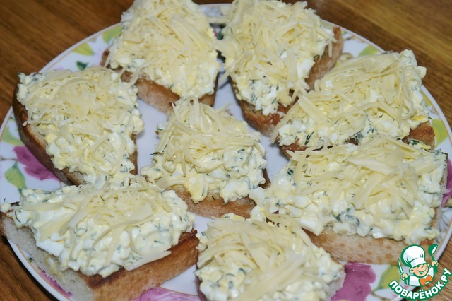 Можно яйца перемешать с майонезом,чтобы не сыпались Очень вкусные бутербродики!!!