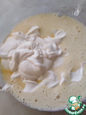 Ввести муку +ванилин +разрыхлитель, массу хорошенько перемешать.