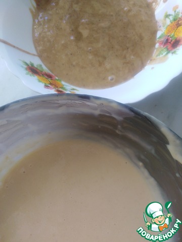 Тесто разделить на 2 части. В одну добавить сгущеное молоко, в другую варёнку.