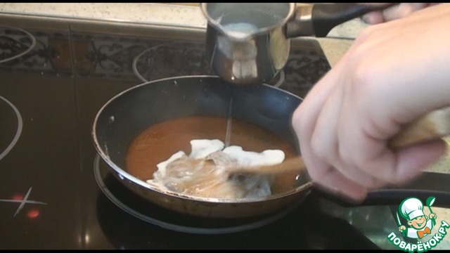 В отдельной ёмкости я нагрела молоко. Когда сахар расплавился, убавляем огонь и понемногу добавляем молоко к сахару. Оно начнет бурно бурлить). Вмешиваем его в сахар и подливаем опять молоко. Можно в процессе вмешивания отставлять сковороду с комфорки, чтобы карамель не сгорела. Так вливаем все молоко и хорошо все размешиваем.