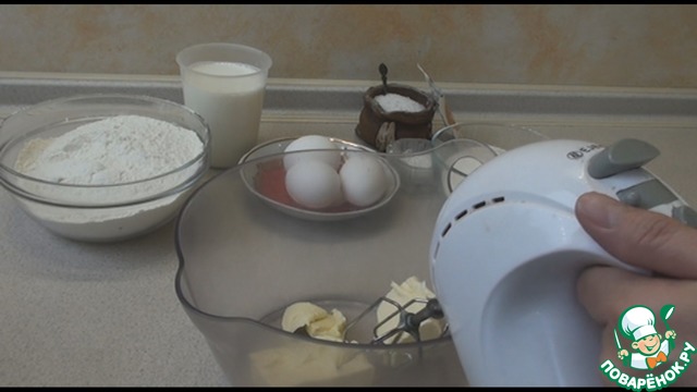 Для теста берем 130 гр сливочного масла комнатной температуры и хорошо взобьем его миксером.