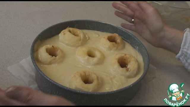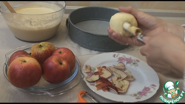 Форма у меня 24 см, в неё поместилось 6 яблок. Очищаем яблоки от кожуры, вырезаем серединку и выкладываем целыми в форму.
