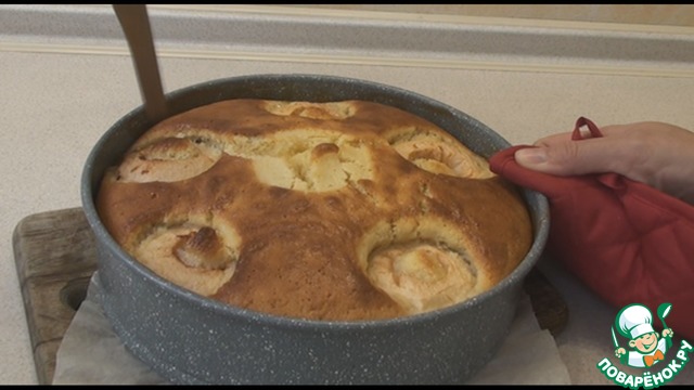 Готовый пирог достаём из формы и даем остыть, чтобы был слегка теплым.