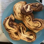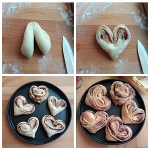 Кладём на "ребро" и надсекаем ножом, оставляя край не рассечённым примерно 1-1,5 см. Выворачиваем "плюшкой" (см. фото). Выкладываем на противень, застеленный пекарской бумагой или как я - на антипригарную форму. Выкладываем с расстоянием, "плюшки" подрастут. Ставим в разогретую духовку до Т-180 С на 25-30 минут. Ориентируйтесь на свою духовку. Готово!