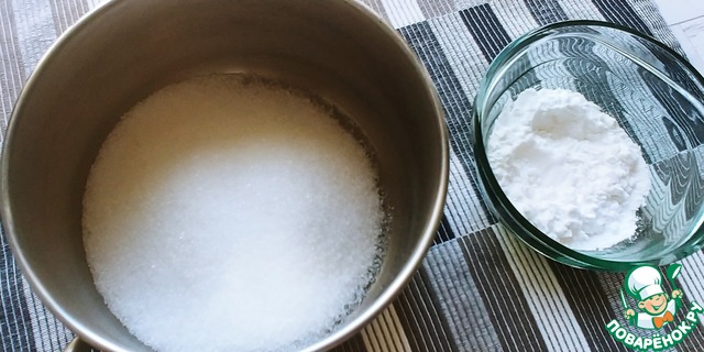 В небольшой кастрюльке перемешиваем 30гр крахмала с сахаром, 120-130 гр. -