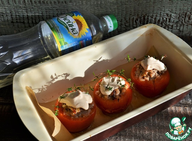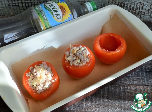 Рецепт «Запечённые помидоры с фаршем и сыром»: