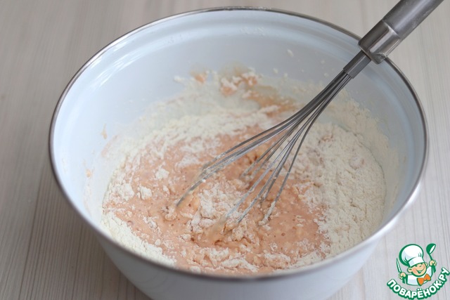 Затем добавить постепенно общее количество муки. Хочу обратить внимание, при замешивании теста, следите за тем, что бы тесто было мягким и в дальнейшем удобным в работе. Муки в данном случае, может потребоваться чуть больше или чуть меньше того количества, которое я написала в ингредиентах.