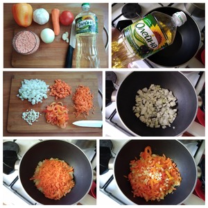 - Чечевица (стакан ёмкостью 300 мл, у меня красная дробленная, любая) — 0.75 стак.