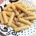 Теперь начинается магия создания соуса. Добавить немного воды от ригатони и перемешать до её испарения. Добавить ещё немного воды и снова перемешать. И так далее. По ходу процесса, добавлять по частям пармезан.