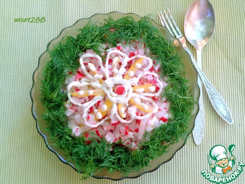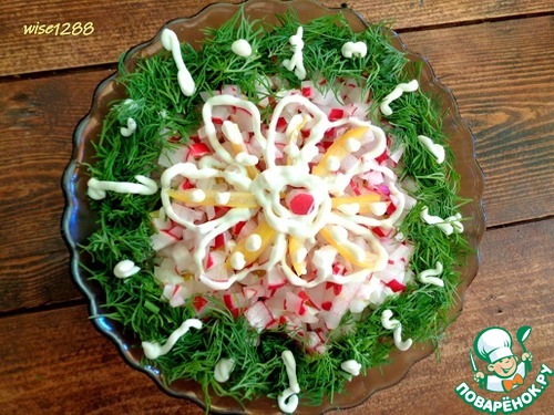 Оформить зеленью укропа, нанести майонез. Приятного аппетита!!!