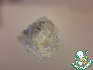 Под размер нашей формы отрезаем пекарскую бумагу и мнем ее руками в комок. Это нужно для ее мягкости и максимального заполнения бумагой формы.