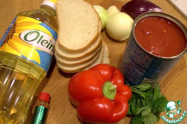 - Томаты в собственном соку (по 400 г) — 2 бан.