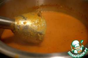 Взбиваем блендером прямо в кастрюле. Взбивать надо тщательно до бархатистого состояния.