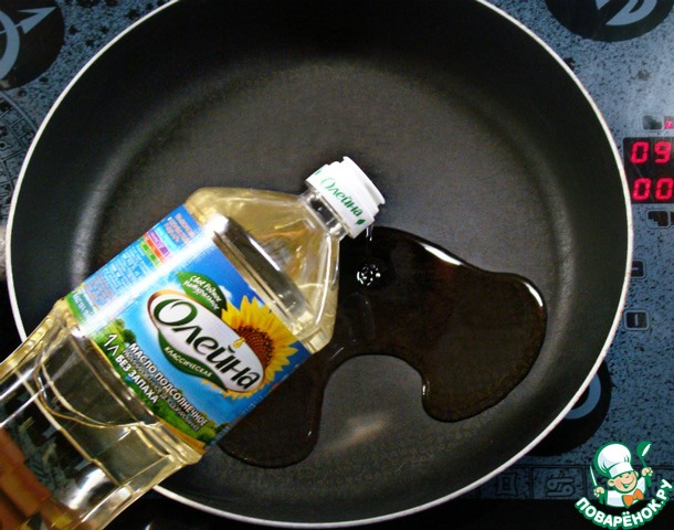 Сковороду накалить и влить 2 ст. л. растительного масла ТМ "Олейна".