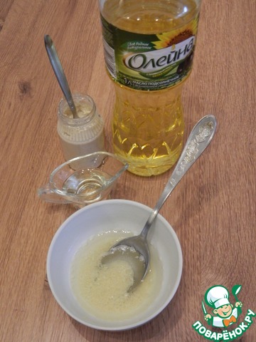 Приготовим соус. Растительное масло смешаем с соком лимона.