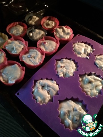 Разложить по формочкам ( на 2/3). Выпекать при 180 С 18-20 минут.