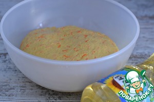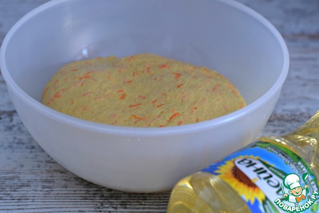 Так как мука бывает разной, то сразу все ее количество всыпать не стоит. Возможно, придется уменьшить или увеличить вес муки. На такую корректировку может повлиять и сочность моркови. -