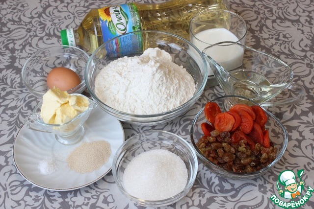 Ингредиенты для «Булочки "Завитушки" с курагой и изюмом»:
