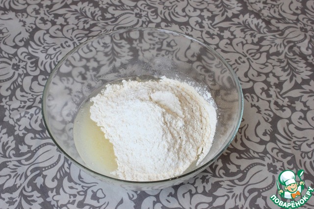 Муку заранее смешиваю с быстродействующими дрожжами. Постепенно подсыпаю муку в жидкую смесь и начинаю замешивать тесто.