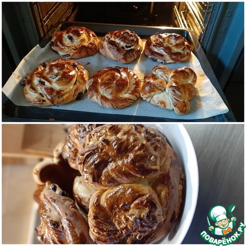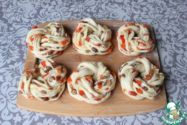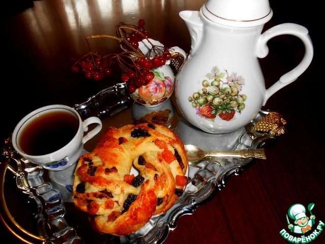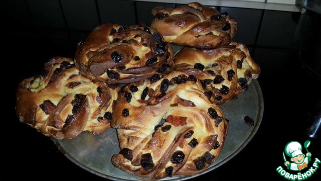 Рецепт «Булочки "Завитушки" с курагой и изюмом»: