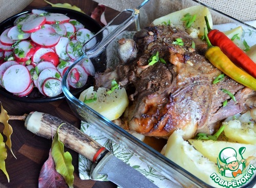 Быстро и легко, вкусно и красиво! Баранья нога из духовки, а то что её заранее отварили, мы и не скажем никому. Схитрим..., ещё и бульон останется. Рекомендую.