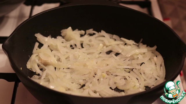 Подготовим соус. В разогретую сковороду наливаем масло и обжариваем лук до прозрачного состояния.