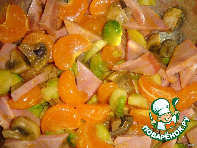 Рецепт «Салат с ветчиной, мандаринами и брюссельской капустой»: