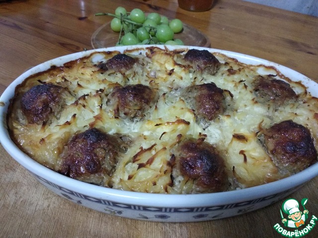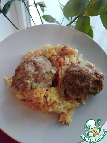 [+5]Очень понравилась идея тертой картохи с котлетками в одной посуде