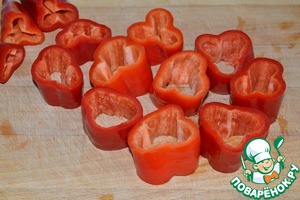 Перец помыть, нарезать на кольца, шириной 2 см., семена и перегородки удалить.