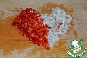 Нафаршировать кольца перца и выложить их на противень, застеленный пергаментом.