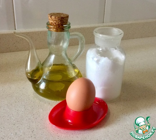 Подготовим необходимые продукты. Вместо 1 куриного яйца можно взять 3 перепелиных. Масло у меня оливковое рафинированное, т. е. не первого отжима, оно не горчит. Часто делаю с подсолнечным, или 50 на 50. Соль обычная.