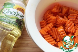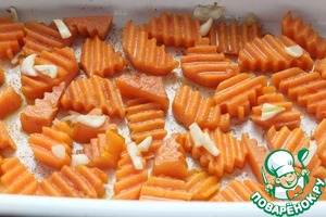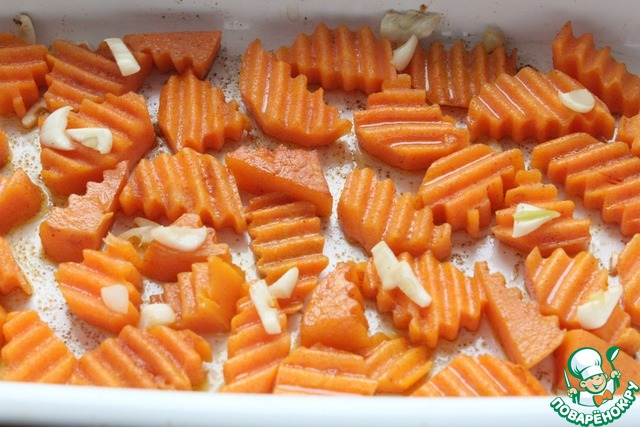 Порезать морковь и тыкву на кусочки.