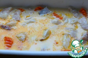 Залить молочным соусом.