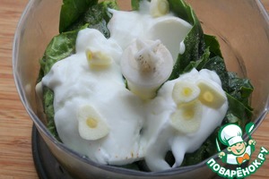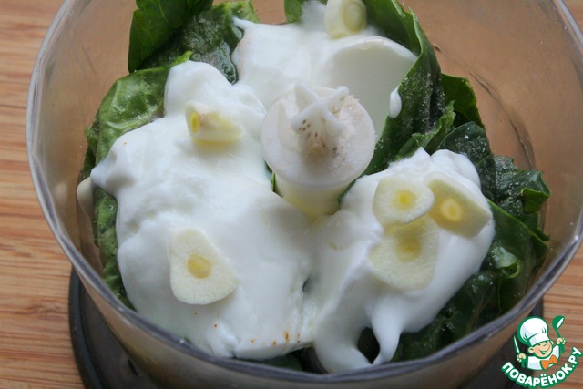 Шпинат, соль, йогурт и зубчик чеснока пробить в блендере. откорректировать на вкус.