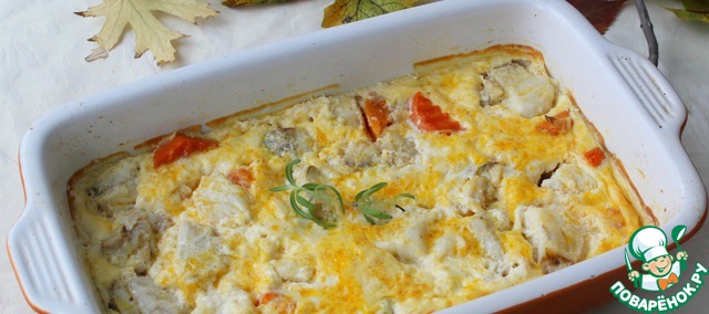 Рецепт «Рыбная запеканка со шпинатным соусом»:
