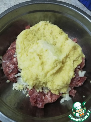 • Выложить картофель в фарш, добавить яйца, посолить по вкусу и добавить приправу. Бабушка делала свою домашнюю приправу, я делилась её рецептом. Ссылку дам ниже. Если же таковой нет, то просто добавьте чёрный молотый перец. Других приправ использовать не советую.