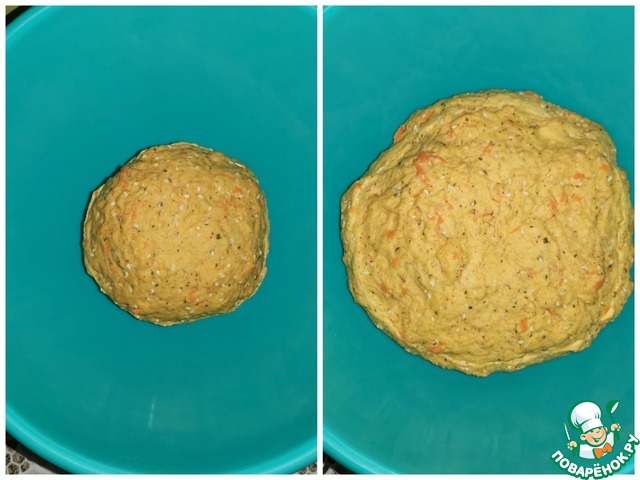 Добавить морковь, натёртую на средней тёрке, кунжут, кусочек сливочного масла, ряженку. Замесить тесто.